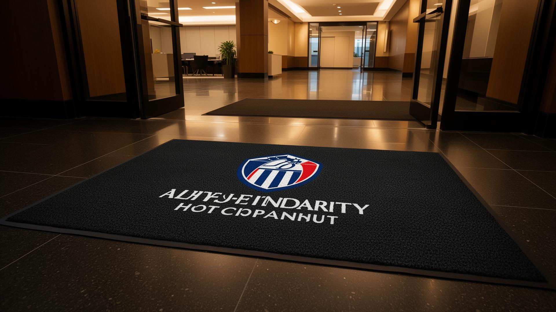 High-definition logo floor mats with precision-printed, fade-resistant branding — perfect for showrooms, lobbies, and retail spaces.